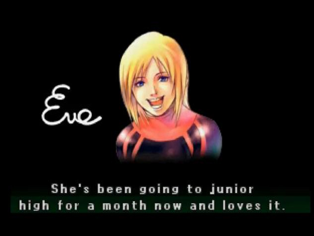 In the good ending of Parasite Eve II, Aya states that Eve has attended junior high for a month, suggesting Eve already has the mentality of an early teenager.