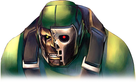 His uniform resembles the Standard Close Combat GOLEM. He also could have served as a commander role of the brainless GOLEM defense units stationed in the shelter and Neo Ark.