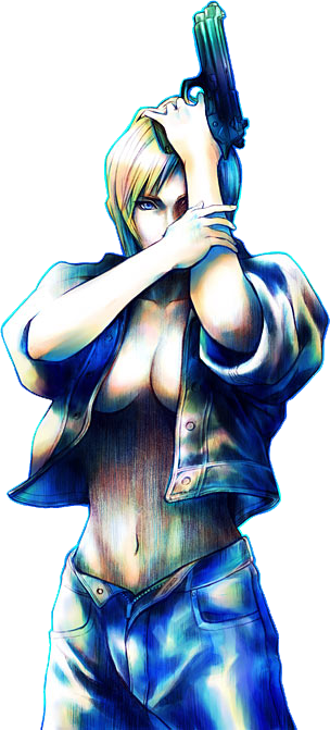 Aya Brea with a handgun.